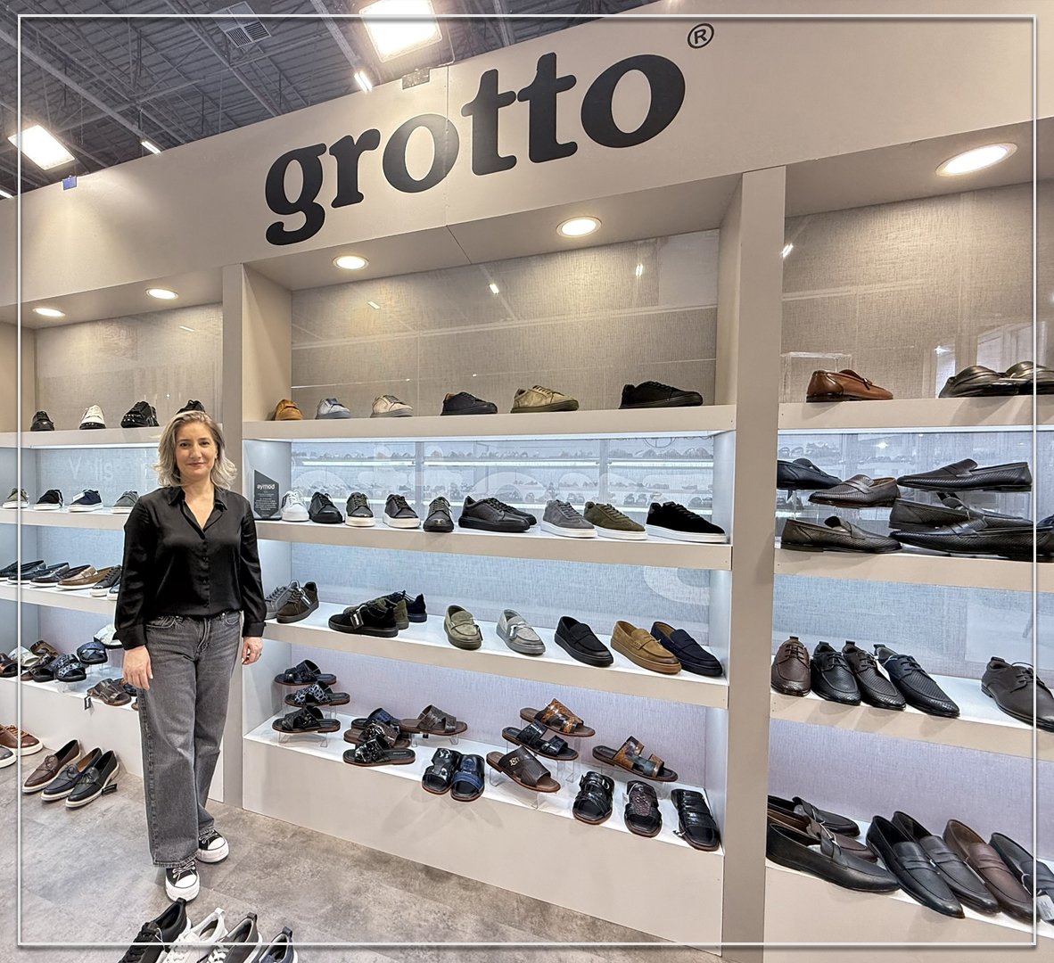 Hello, we are here as Magazine Leather Publishing at the 73rd AYMOD Fair. We’re visiting the stand of one of Türkiye’s leading footwear brands — GROTTO.