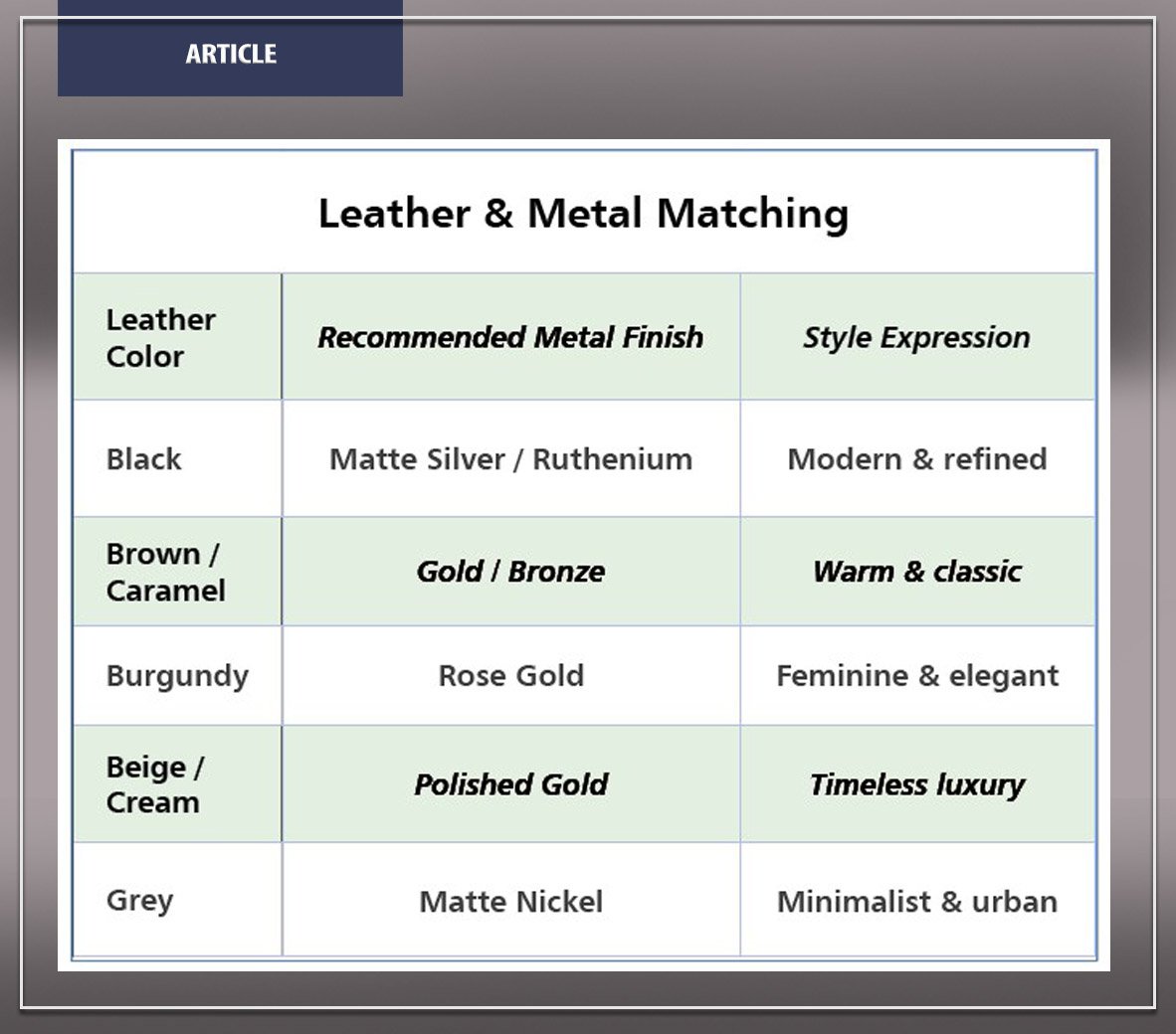 Кожаные сумки веками символизировали мастерство и благородство материалов. Но настоящий люкс рождается не только из качества кожи — он проявляется в блеске, цвете и стойкости металлических деталей.